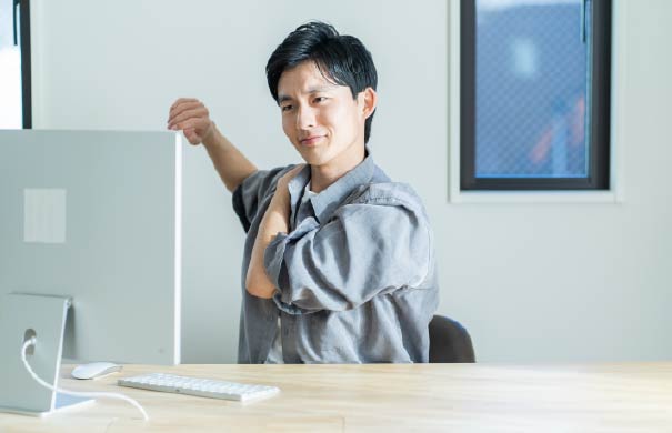 四十肩・五十肩(正式には肩関節周囲炎)は、肩関節の周囲組織に炎症が起こることで、肩の動きが制限されたり、強い痛みを感じる症状です。40代から50代に多く見られることからこの名称がついています。明確な原因がないまま発症することが多く、特に腕を上げたり後ろに回す動作で強い痛みを感じるのが特徴です。炎症のピーク時は夜間痛や安静時の痛みが強く、日常生活に大きな支障をきたすことがありますが、適切なリハビリや治療によって回復が見込まれます。